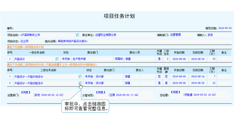 支持項(xiàng)目任務(wù)審批、信息調(diào)整和狀態(tài)調(diào)整。