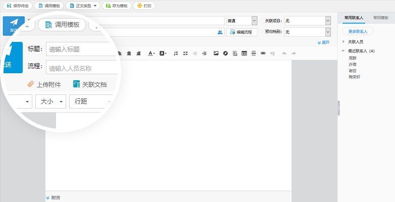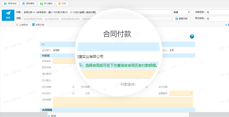 支持合同的錄入、審批,并生成合同檔案,便于查詢和管理經(jīng)手合同。