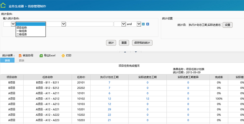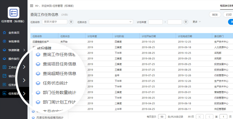 支持任務(wù)管理相關(guān)信息的查詢和報(bào)表統(tǒng)計(jì),可根據(jù)實(shí)際需要調(diào)整修改。