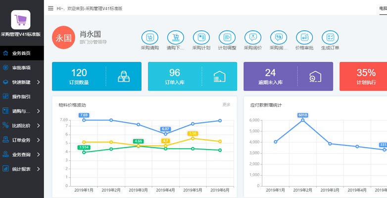 自定義常用功能入口;快速瀏覽采購相關(guān)數(shù)據(jù)報(bào)表,為采購相關(guān)決策提供依據(jù)。