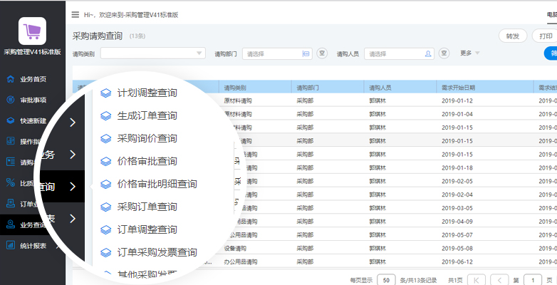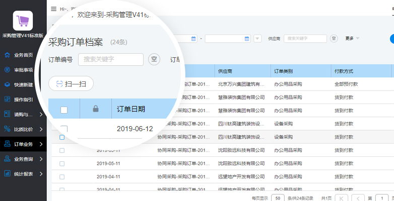 支持請購、計(jì)劃、比質(zhì)比價(jià)、訂單和發(fā)票的所有流程審批查詢