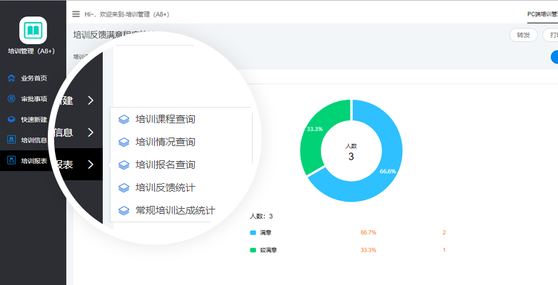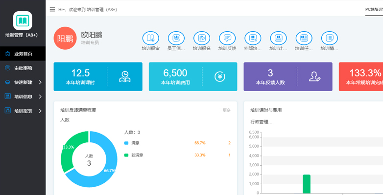 支持自定義常用功能入口;快速掌握培訓(xùn)管理的相關(guān)信息,并以圖表形式呈現(xiàn)。