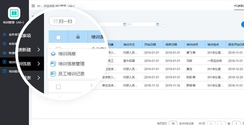 支持培訓(xùn)人員信息的錄入、記錄和管理,以及培訓(xùn)報(bào)審。