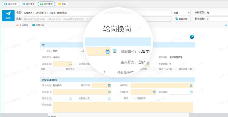 支持對員工的轉(zhuǎn)正、輪崗換崗、離職等內(nèi)容的發(fā)起與審批。