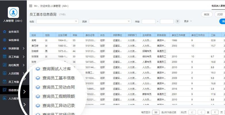 支持人事管理相關(guān)信息的查詢和報(bào)表統(tǒng)計(jì),可根據(jù)實(shí)際需要調(diào)整修改。