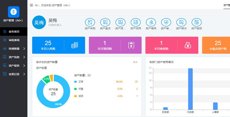 支持自定義常用功能入口;快速掌握資產(chǎn)管理的相關(guān)信息,并以圖表形式呈現(xiàn)。