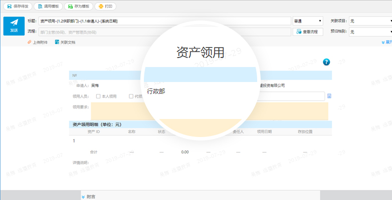 支持資產(chǎn)的領(lǐng)用、借用和維修保養(yǎng)的流程審批。