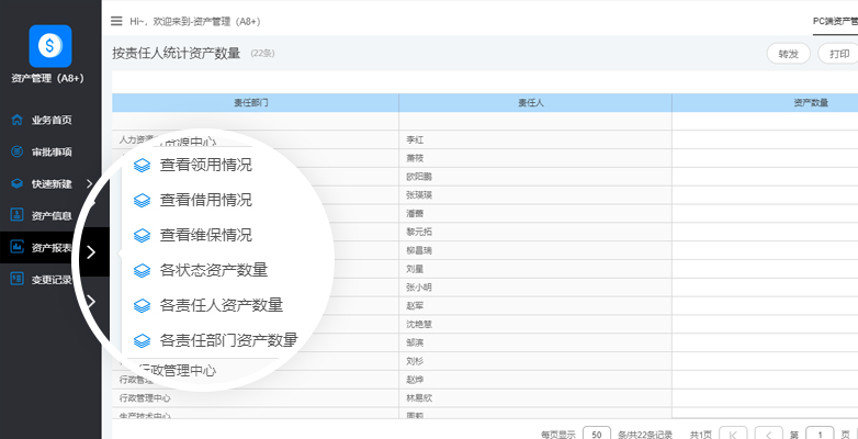 支持資產(chǎn)管理相關(guān)信息的查詢和報(bào)表統(tǒng)計(jì),可根據(jù)實(shí)際需要調(diào)整修改。