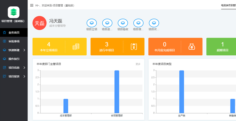 支持自定義常用功能入口;快速掌握項(xiàng)目管理的相關(guān)信息,并以圖表形式呈現(xiàn)。