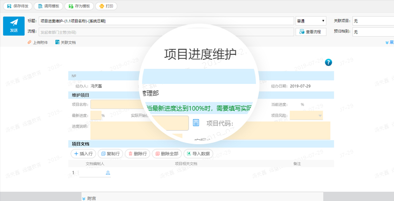 填寫進(jìn)度相關(guān)信息后,經(jīng)審批后,系統(tǒng)自動(dòng)更新項(xiàng)目進(jìn)度。