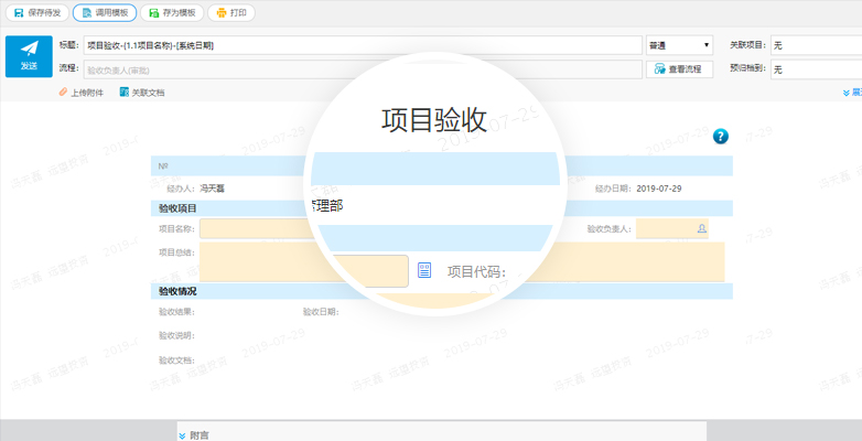 填寫項(xiàng)目驗(yàn)收單,經(jīng)相關(guān)部門及管理者審批后,系統(tǒng)自動(dòng)更新項(xiàng)目狀態(tài)。