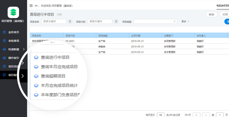 支持項(xiàng)目管理相關(guān)信息的查詢和報(bào)表統(tǒng)計(jì),可根據(jù)實(shí)際需要調(diào)整修改。