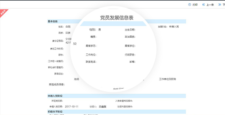 支持發(fā)起入黨申請,并可對黨員發(fā)展各階段進(jìn)行記錄和審批審核。