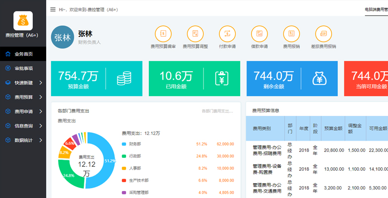 支持自定義常用功能入口;快速掌握費(fèi)用使用情況的信息,并以圖表形式呈現(xiàn)。