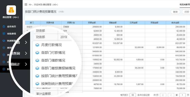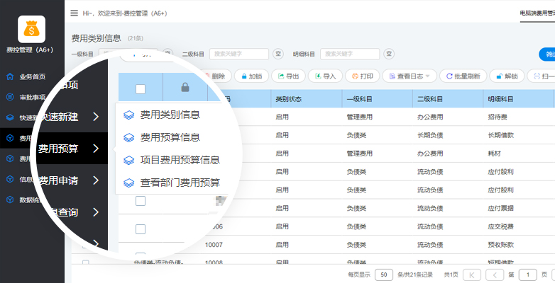 支持費(fèi)用預(yù)算的基礎(chǔ)信息存儲、控制、編審和查看。