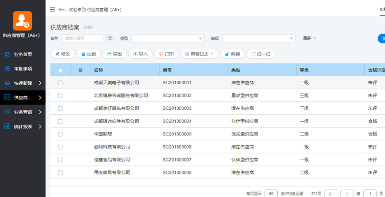 支持供應(yīng)商的注冊、新增和變更,并生成供應(yīng)商檔案。