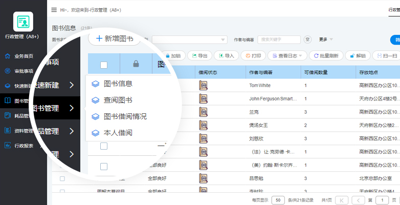 支持自定義常用功能入口;快速掌握行政管理的相關(guān)信息,并以圖表形式呈現(xiàn)。