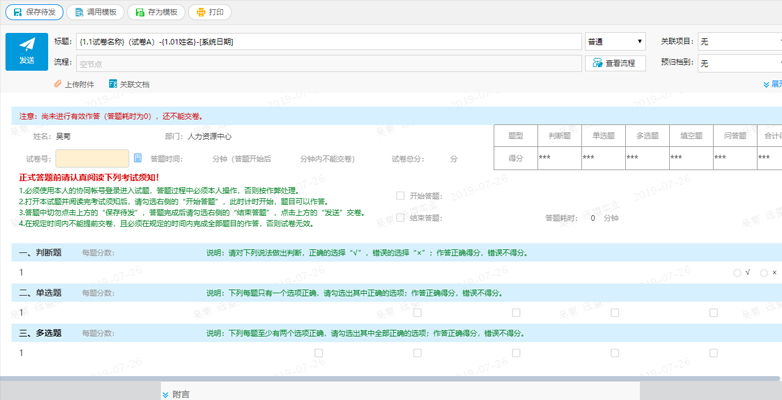 支持針對不同人群設(shè)置不同試卷,系統(tǒng)即自動(dòng)完成批改和計(jì)分。