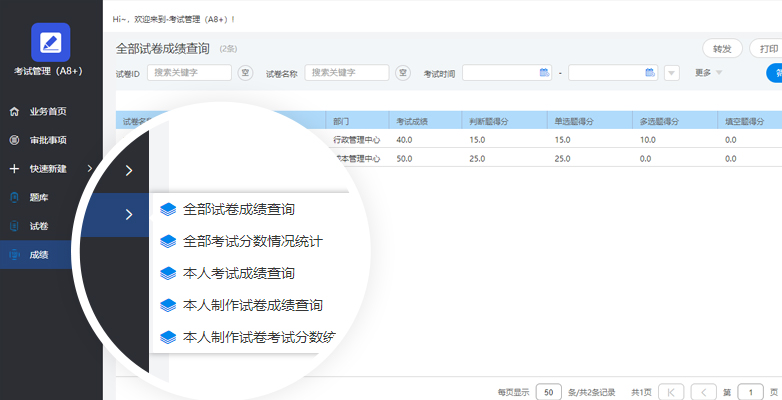 支持考試相關(guān)信息的查詢和報(bào)表統(tǒng)計(jì),可根據(jù)實(shí)際需要調(diào)整修改。