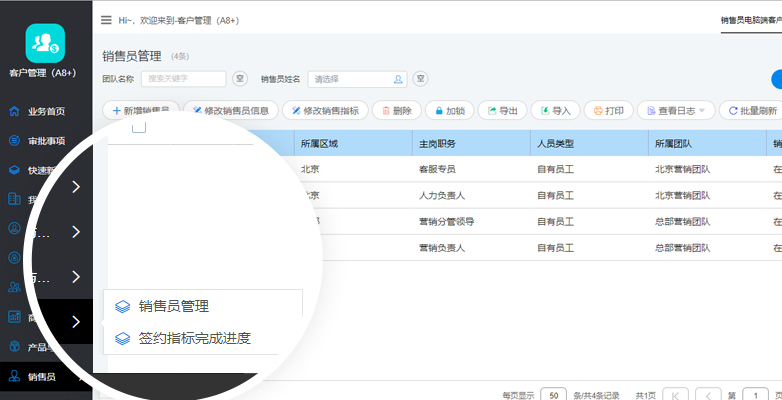 支持對銷售人員的管理,及商機(jī)與簽約等銷售指標(biāo)的編審。