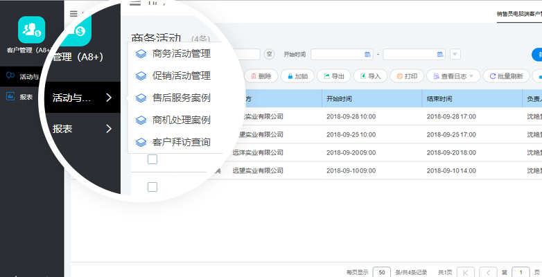 支持對商機(jī)的錄入、跟進(jìn)和管理,以及對銷售訂單、支付和售后服務(wù)的管理。